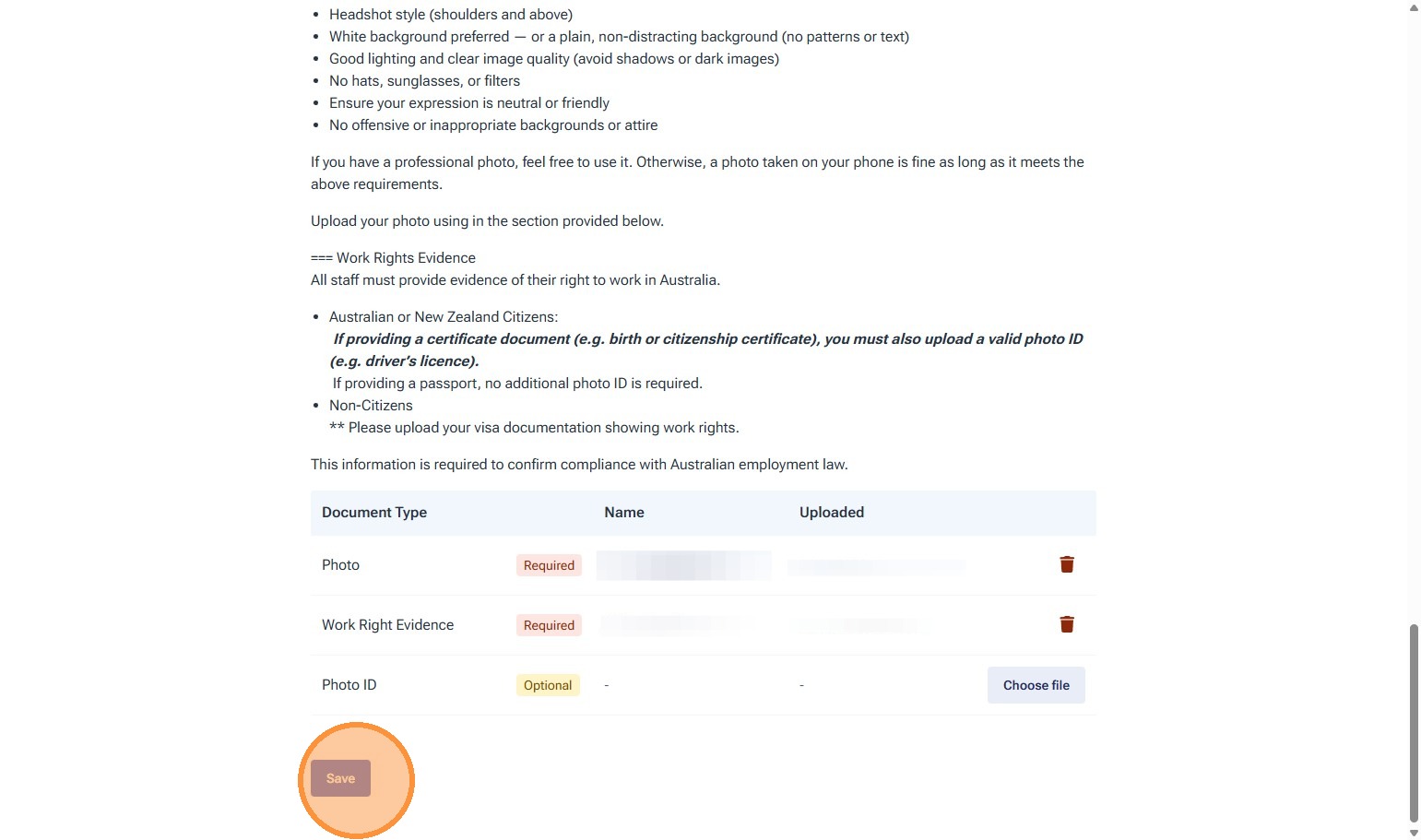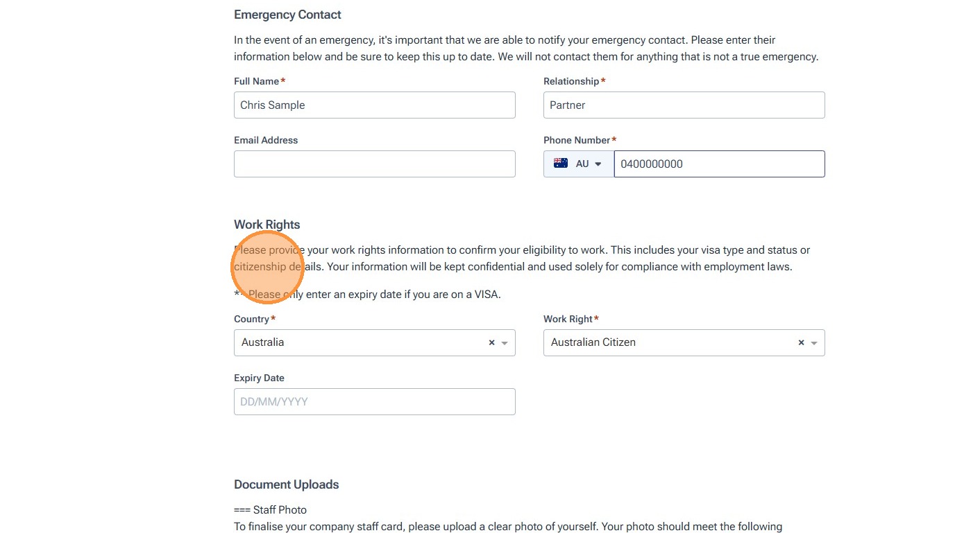 10. Review your work rights information.