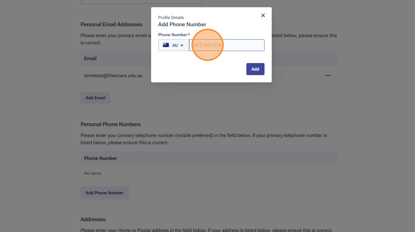 If you need to add an alternative contact number for yourself, click "Add Phone Number"