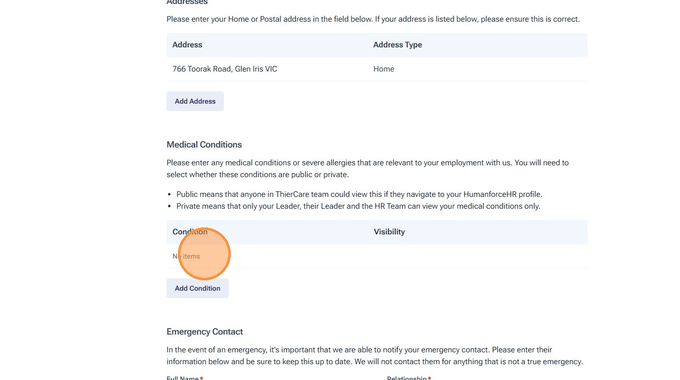 8. If you have a medical condition which we need to be aware of this can be added in this section.