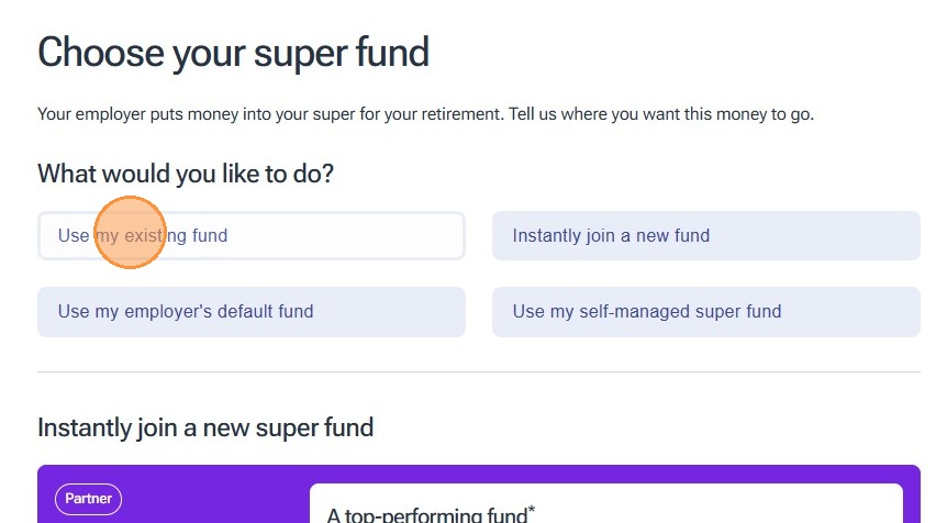 Tip: For the purposes of this instruction guide we have selected "Use my existing fund", however you will need to select the option most relevant to you.
