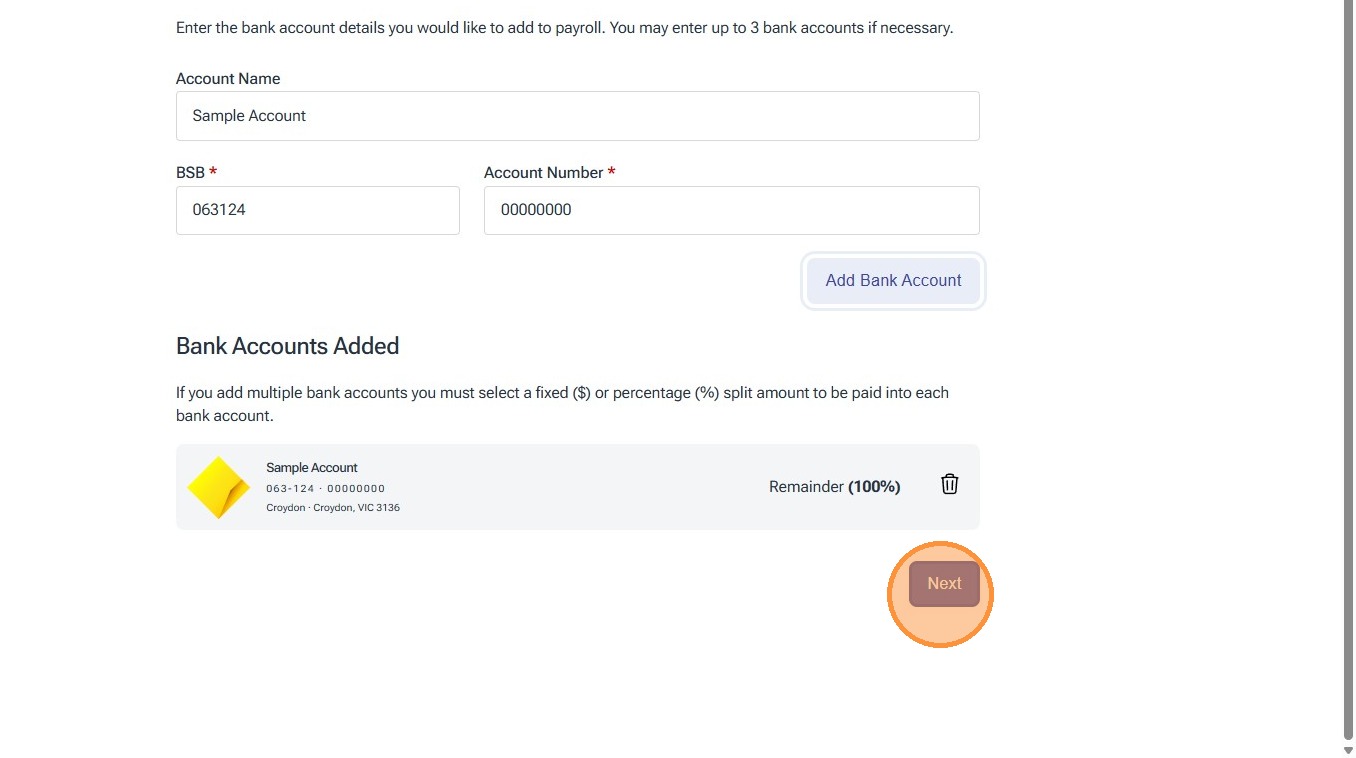 23. The system will check the BSB is valid and will show you a summary of what has been entered so far.